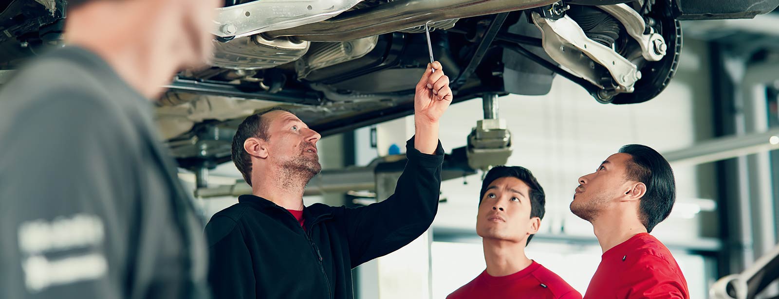Gut, dass man sich auf gewisse Dinge immer verlassen kann. Dazu gehört ohne Frage der Fahrspaß, den Sie in Ihrem Porsche genießen können. Zu jeder Zeit – bei jeder Witterung. Damit das so bleibt, gibt es den 33-Punkte-Check. Bei dieser Prüfung nehmen wir Ihren Porsche genau unter die Lupe und untersuchen die Stellen, die besonders beansprucht werden. Dazu zählen das Fahrwerk inkl. Rädern, der Motorraum inkl. Antriebssystem und sicherheitsrelevante Bauteile wie die Bremsanlage.
